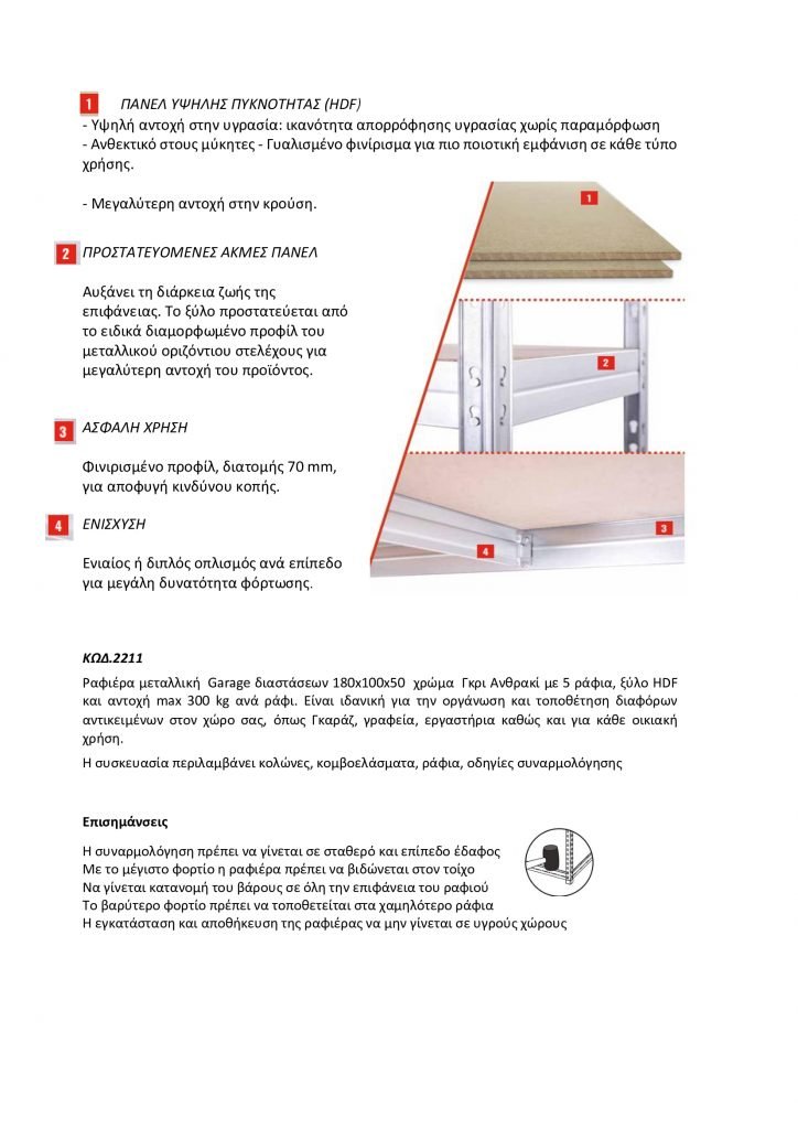 | Περιλαμβάνονται | Οδηγίες συναρμολόγησης, ράφια, κολώνες, πέλματα, σύνδεσμοι |